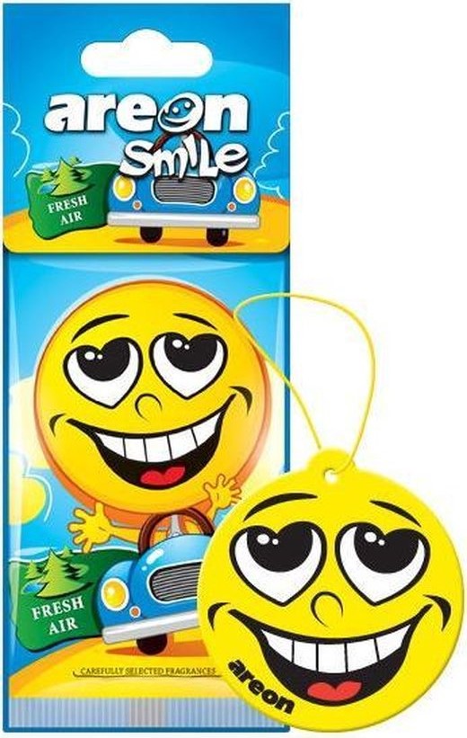 ΧΑΜΟΓΕΛΑΣΤΟ ΞΗΡΟ ΑΡΩΜΑΤΙΚΟ ΧΩΡΟΥ ΑΥΤΟΚΙΝΗΤΟΥ ΜΕ ΑΡΩΜΑ FRESH AIRπεριγραφή προϊόντοςΤο Areon Smile Dry είναι μια σειρά ετικετών αυτόματης ανάρτησης, η οποία ανταποκρίνεται στον αυθόρμητο τρόπο ζωής των νέων ενεργητικών ανθρώπων και στη γλώσσα της επικοινωνίας τους που είναι δημοφιλή emoticons. Η Areon ήταν ο πρώτος κατασκευαστής που εισήγαγε αποσμητικά χώρου αυτοκινήτων σε μια ελκυστική μορφή συγκίνησης, η οποία εξακολουθεί να αναπαράγεται από ανταγωνιστές κατασκευαστές.Οι ετικέτες κρεμώντας Areon Smile Dry, τις οποίες ονομάζουμε φατσούλα χαμόγελα, έχουν διακριτικά κίτρινα χρώματα, τα οποία αποτελούν φορέα θετικής ηλιακής ενέργειας. Οι κρεμάστρες Smile Dry είναι διαθέσιμες σε 6 δημοφιλή και φρέσκα αρώματα, και με μια εύχρηστη λαστιχένια ταινία μπορείτε εύκολα να τις εγκαταστήσετε στο αυτοκίνητό σας. Αποκτήστε μια θετική διάθεση στο αυτοκίνητό σας και ταξιδέψτε με ένα χαμόγελο Areon!