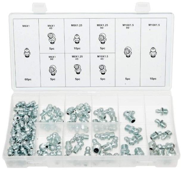 ΓΡΑΣΑΔΟΡΑΚΙΑ ΣΕΤ 110 ΤΕΜΑΧΙΑ ΣΕ ΘΗΚΗM6x1 ευθεία 60τμχM6x1 45 ° 5 τεμM6x1 90 ° 5 τεμM8x1.25 ευθεία 10τμχM8x1.25 45 ° 5 τεμM8x1.25 90 ° 5 τεμM10x1,5 ευθεία 10τμχM10x1,5 45 ° 5 τεμM10x1,5 90 ° 5 τεμΧρησιμοποιείται για αντικατάσταση εξαρτημάτων που λείπουν ή έχουν υποστεί ζημιά σε υδραυλικές γραμμές γράσουΟ χάλυβας με επίστρωση ψευδάργυρου αντέχει στη σκουριά και τη διάβρωσηΟργανωμένη σε μια βολική πλαστική θήκη αποθήκευσηςΥλικά υψηλής ποιότητας και κατασκευή για τη διασφάλιση μεγάλης διάρκειας ζωήςΤα πιο δημοφιλή και δύσκολο να βρείτε μεγέθη